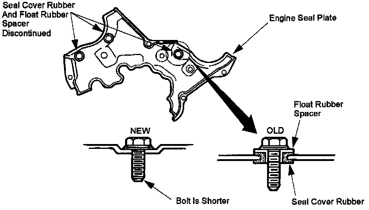 When servicing a vehicle built prior to 12/14/93, revised hardware may be required due to this change. When replacing a seal plate, also replace the three attaching bolts.