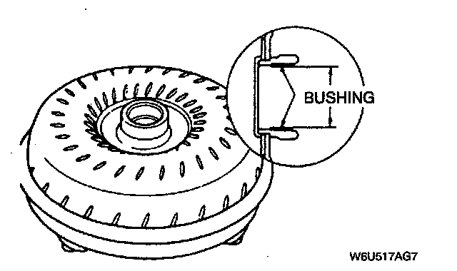3. Measure the bushing of the torque converter boss. Replace the converter if the bushing is worn.