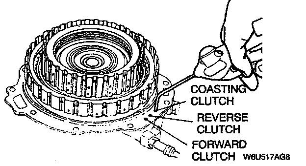 2. Inspect the clutch operation applying compressed air through the fluid passages shown.