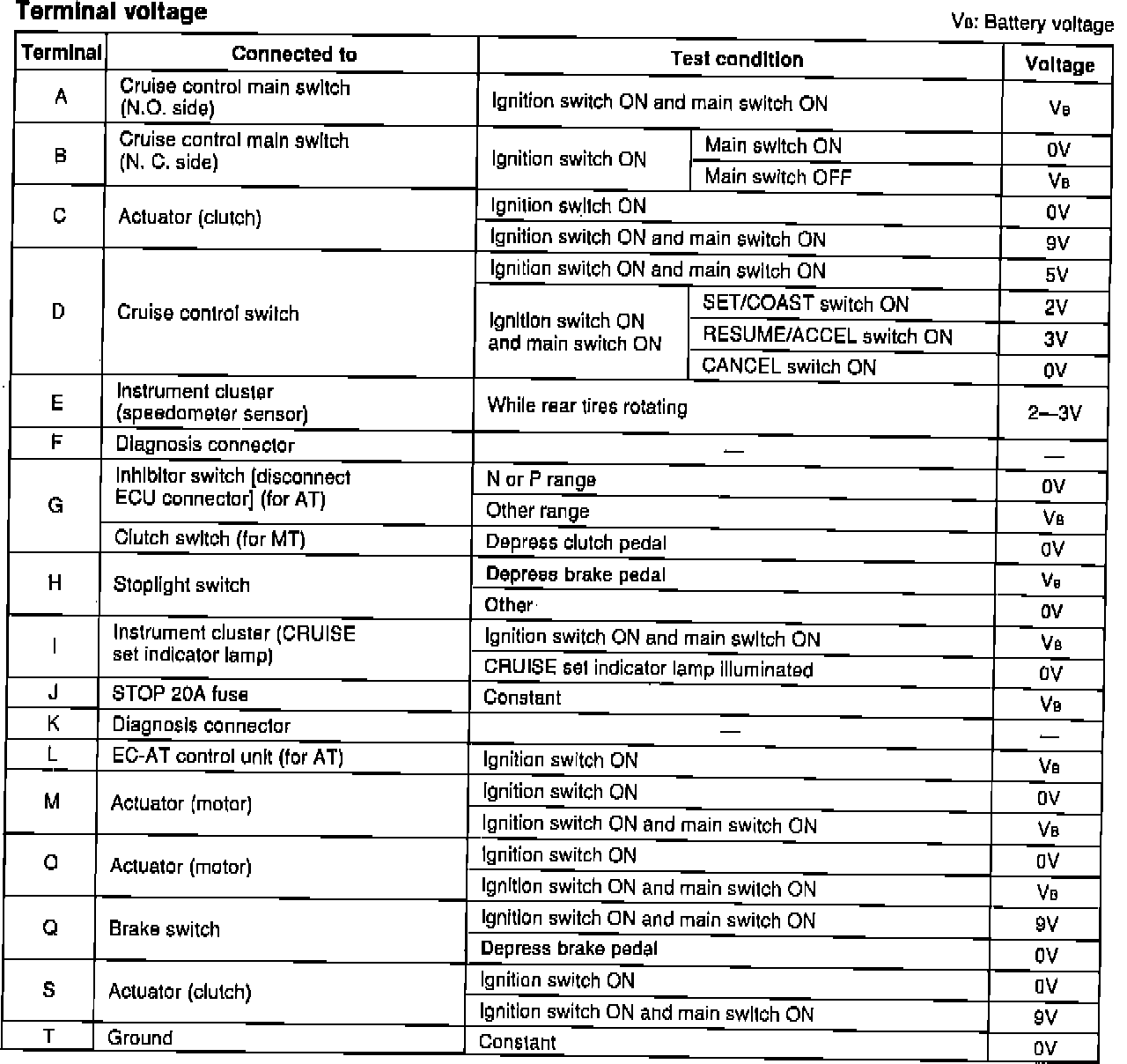 Cruise Control Voltage Chart: