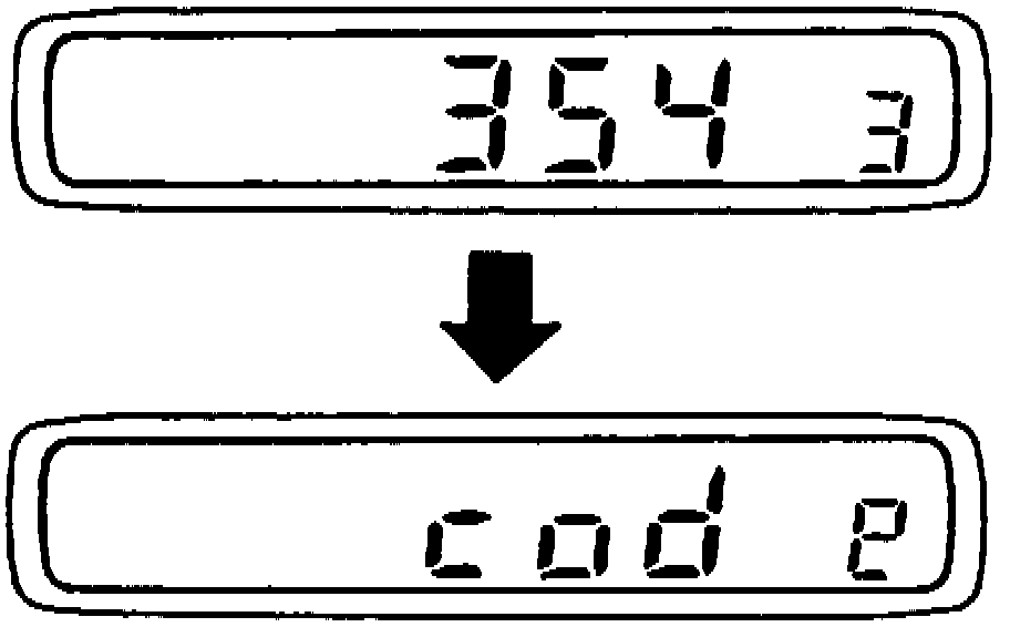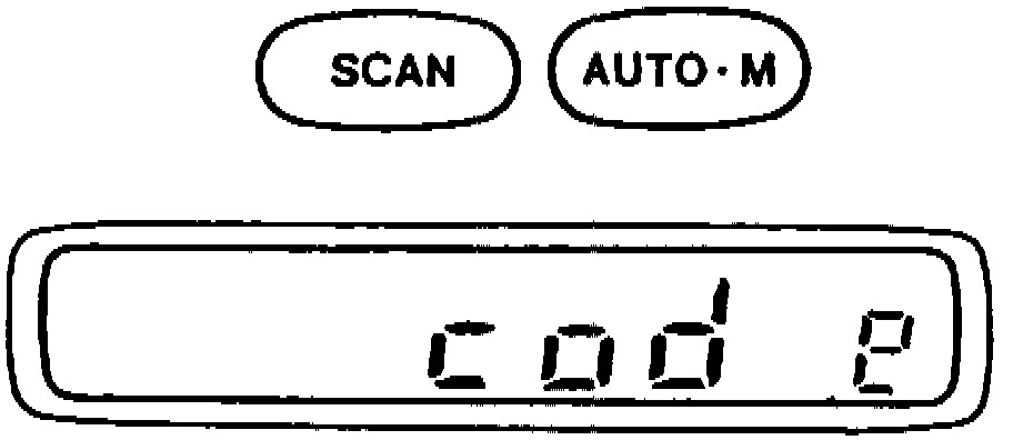 2. Press and hold SCAN and AUTO-M buttons simultaneously for approximately two seconds until "CODE" appears on display, Fig. 1.