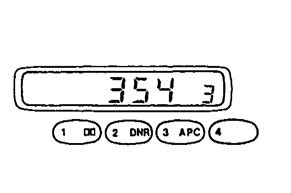 The radio coded theft protection system will render the radio inoperativeif the battery is low or disconnected, or if audio system connectors are disconnected. The radio must be recoded when reconnected. Obtain and record the four digit code prior to disconnecting battery or radio. Complete steps 1 through 3 within 10 seconds or setting procedure will be cancelled.
