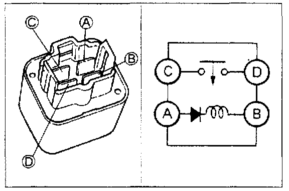 1. Unplug relay. Apply battery voltage across terminals A and B.