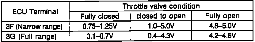 3. Rotate throttle link by hand and verify voltage is within specification.