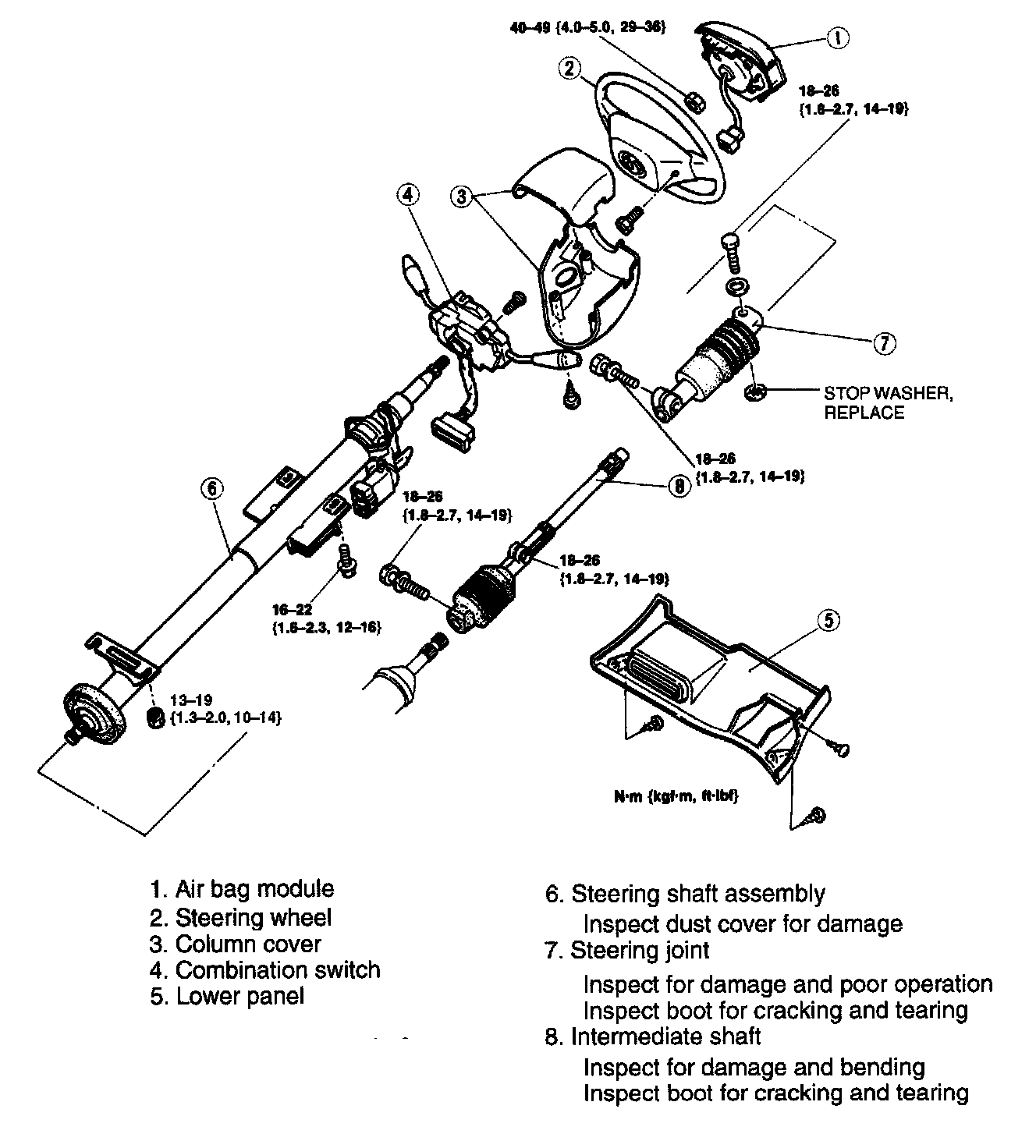 Steering Wheel Effort: 3O-38 N (3.0-3.9 kgf, 6.6-8.5 ft lb) [during one turn of the steering wheel]