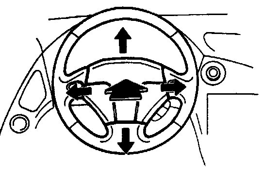 1. Move the steering wheel in the directions of the arrows to check for column bearing wear, steering shaft joint play, steering wheel looseness, and column looseness.