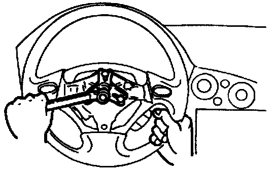3. With the engine running at idle, attach a pull scale to the outermost point of the steering wheel spoke. Then, starting with the wheels in the straight-ahead position, measure the effort required to turn the steering wheel to the left and to the right.