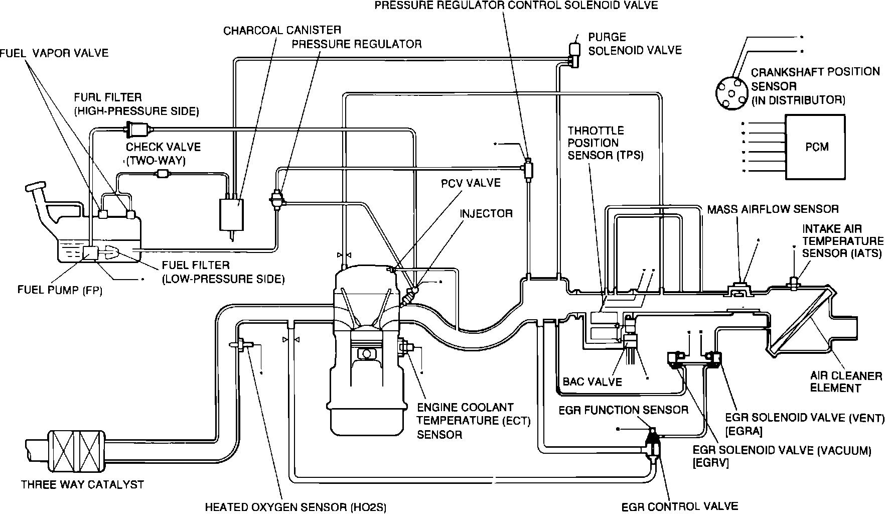 The Powertrain Control Module (PCME) is the central component of this computerized fuel, ignition and emission control system. To maintain fuel economy, good driveability and reduced vehicle emissions, the PCME monitors data from various sensors and controls functions such as the fuel injection system (air/fuel ratio), emission control devices, automatic transmission operation, and on-board diagnostics.