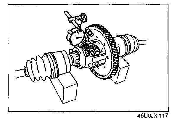 5. Measure the backlash after assembly, referring to Backlash of Side Gear and Pinion Gear.