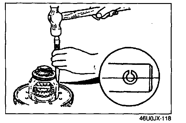 Inspect for wear and rough rotation. If replacing the bearing, replace the bearing and race as an assembly.