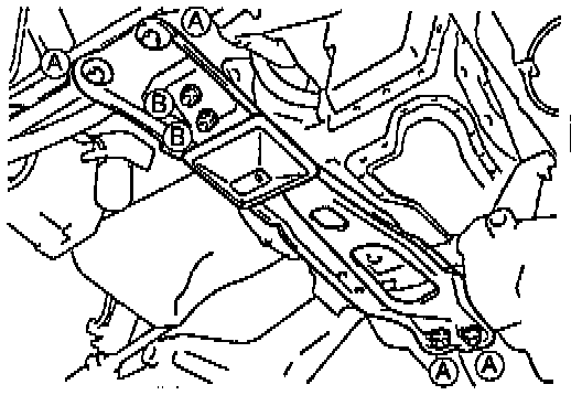 7. Tighten the nuts (B) as shown to 75 - 104 Nm (55 - 77 ft. lbs.).
