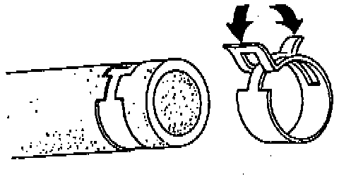 2. Install the hose clamp onto the hose at the center of the mark and at the angle shown.