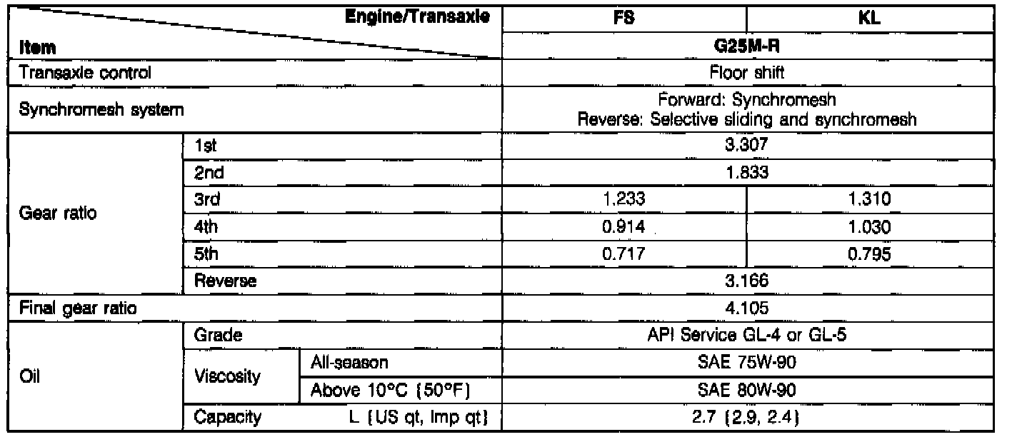 Manual Transmission/Transaxle: Application and ID