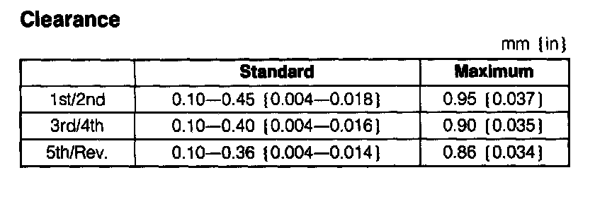 4. Measure the clearance between the hub sleeve and shift fork.