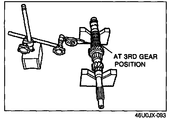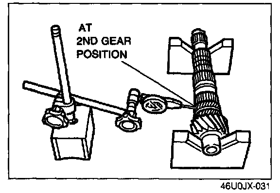 2. Measure the clearance between the reverse idler gear bushing and the reverse lever.