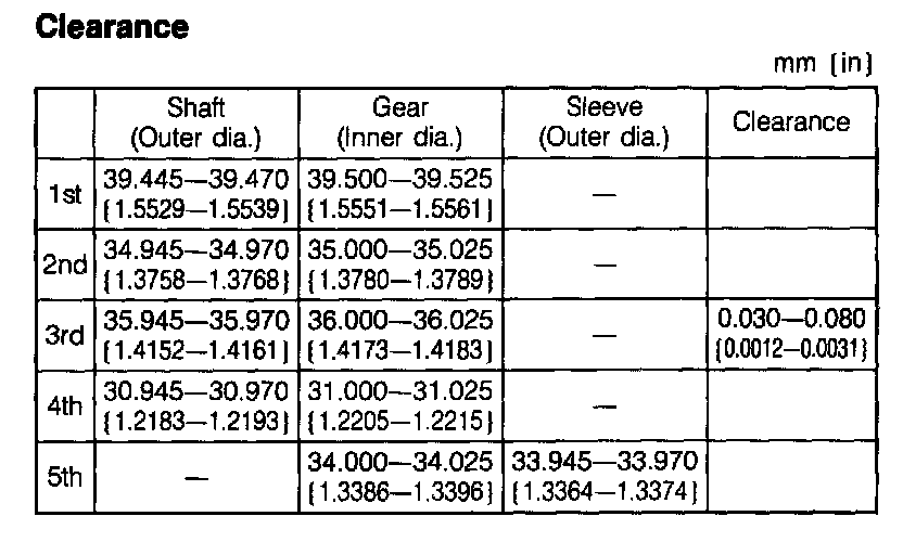 Secondary shaft gear runout: 0.015 mm (0.0006 in) max.