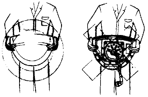^ When carrying a live (unactivated) air bag module, make sure the trim cover is pointed away from your body to prevent personal injury in the event of an accidental deployment.