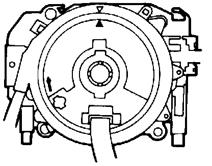 ^ Whenever the steering wheel is removed, before reinstalling it, set the clock spring connector as follows: