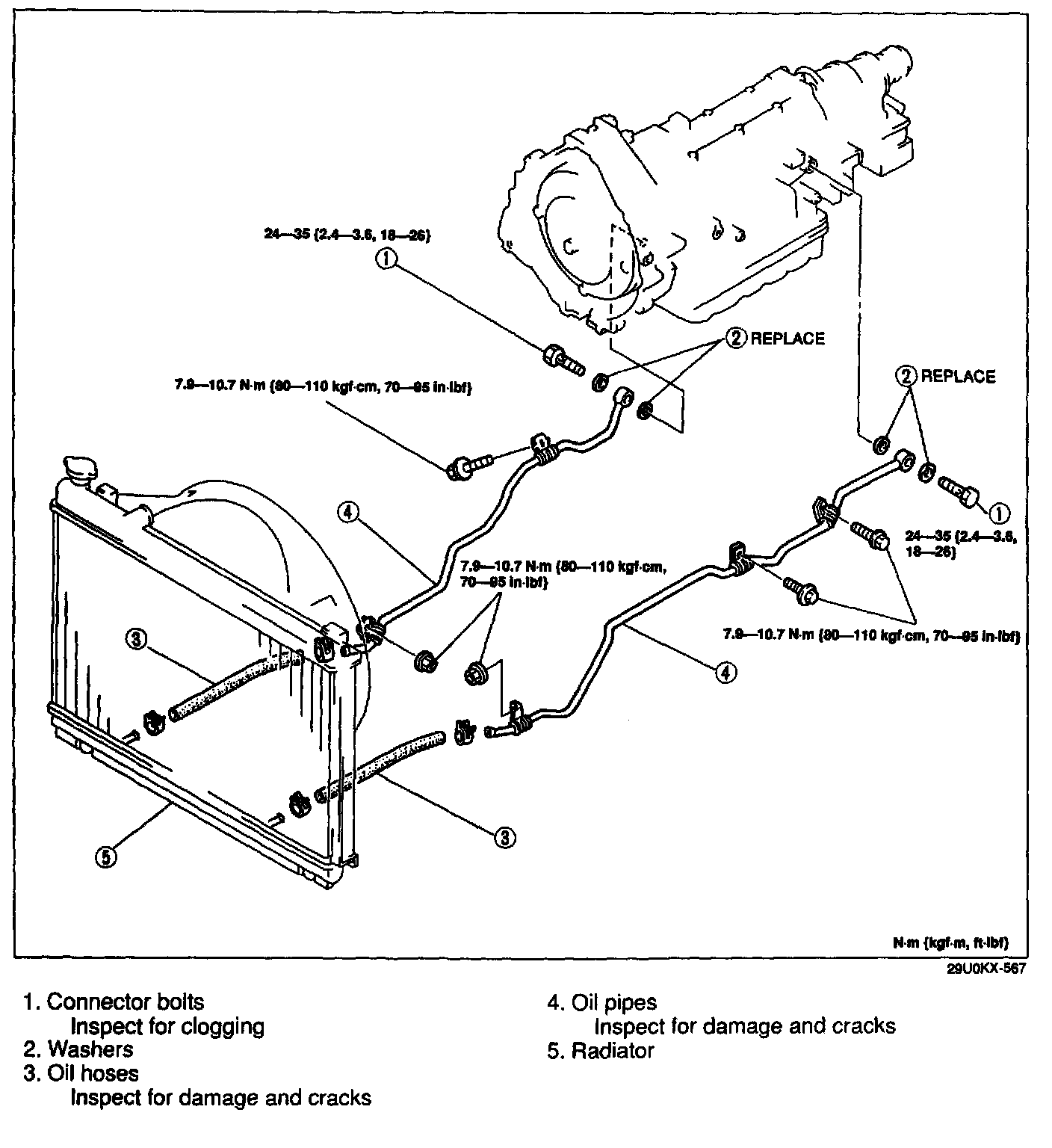 7. Inspect the oil leakage from the oil pipes and oil hoses.
