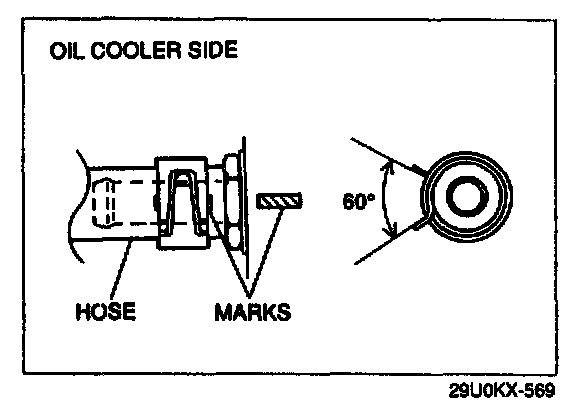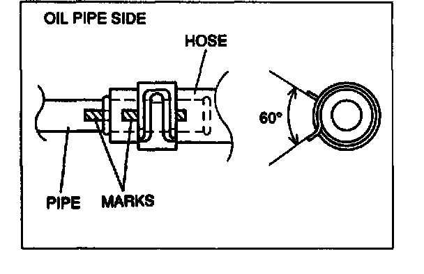 1. Install the oil cooler hose to the oil cooler pipe with the marks aligned as shown, and install the hose clamp.