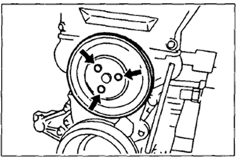 5. Turn the crankshaft two turns clockwise and face the pin on the pulley boss upright. Do not turn the crankshaft counterclockwise.