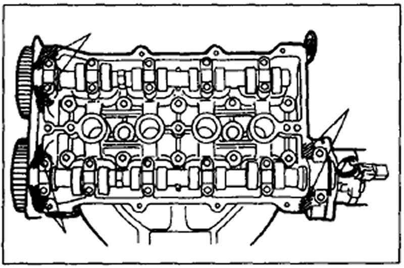 3. Install the timing belt so that there is no looseness at the idler side or between the camshaft pulleys.