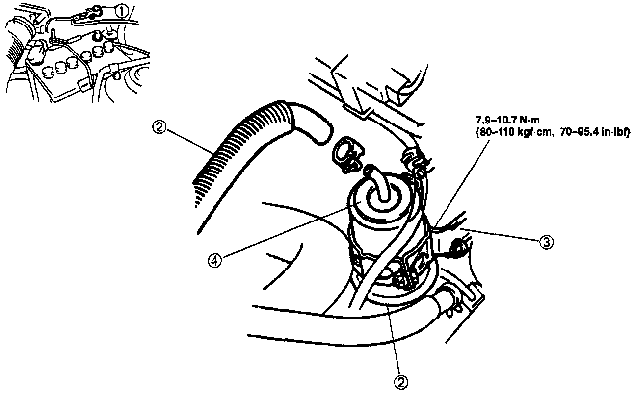 - Tighten fuel filter bracket bolt to: 7.9 - 10.7 Nm (70 - 95.4 in.lb.)