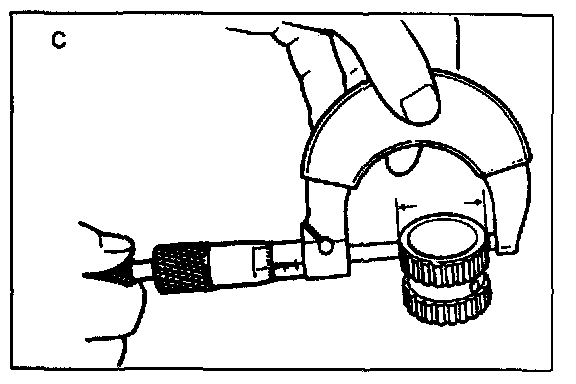 4. Measure the clearance between the synchronizer ring and the flank surface of the gear.
