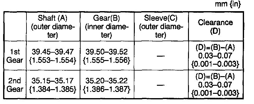 2. Measure the clearance between the reverse idler gear bushing and the reverse lever.