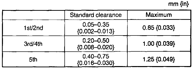Standard clearance: 1.88 mm (0.044-0.074 in)