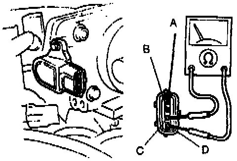2. With an ohmmeter, check for continuity across sensor terminals C and D. If there is no continuity, adjust sensor and recheck.
