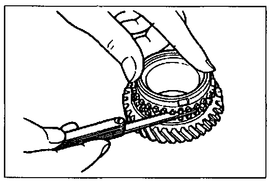 4. Measure the clearance between the synchronizer ring and the flank surface of the gear.