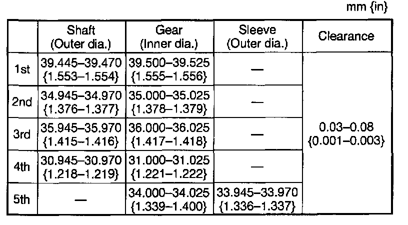 Secondary shaft gear runout: 0.015 mm (0.0006 in) max.