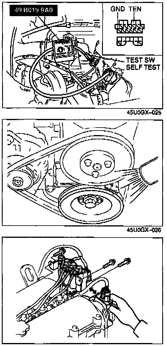 5. Connect Mazda SST and set TEST SW to "SELF TEST" or connect data link connector terminals TEN and GND with a jumper wire.