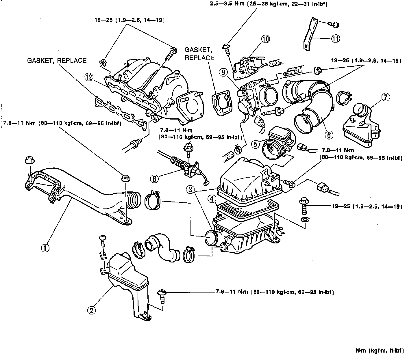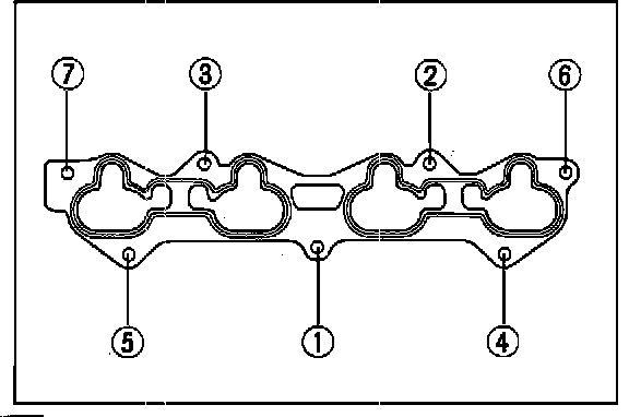 1. Tighten intake manifold bolts in pattern shown. Torque to 14 - 18 ft lb (19 - 25 Nm).