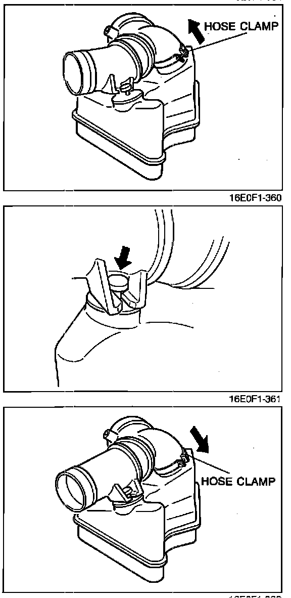 3. Rotate hose and hook it securely on locating knob. Tighten clamp.