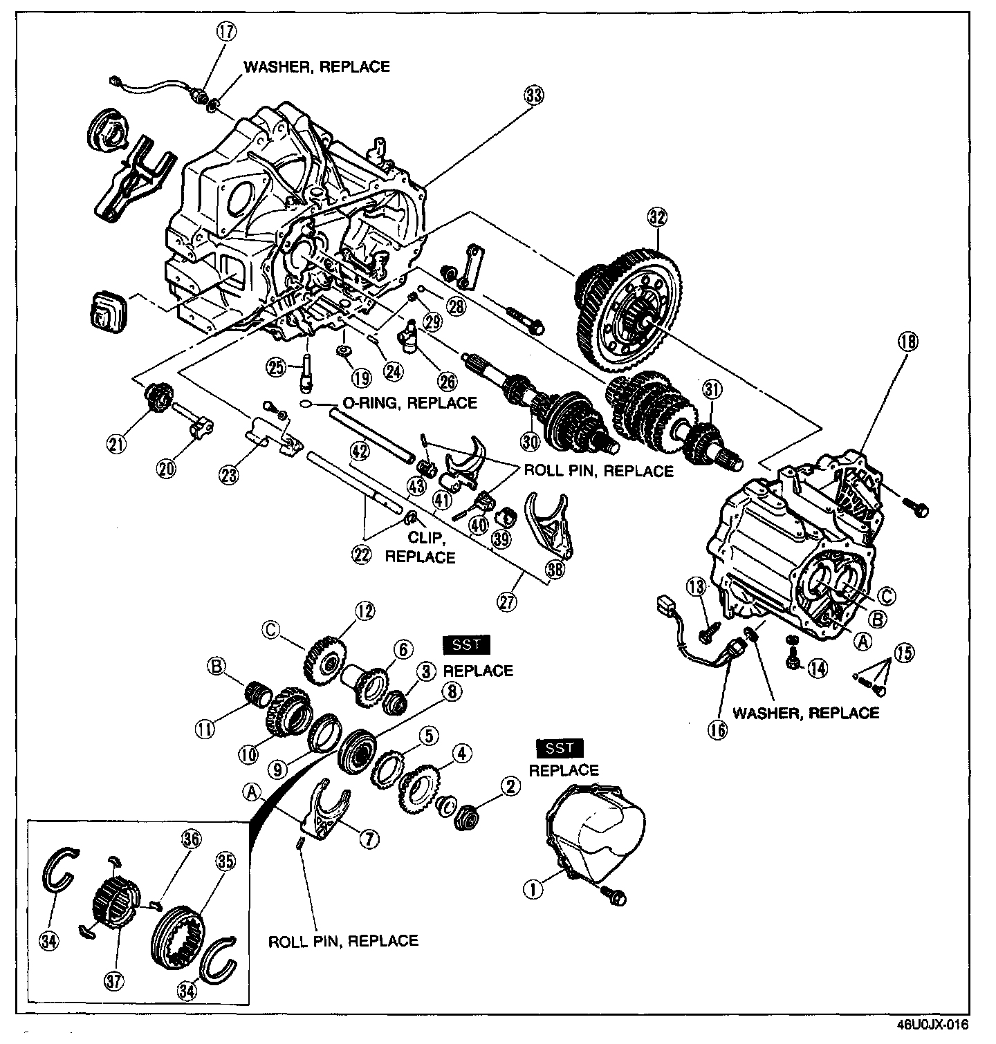1. Measure the thrust clearance of all gears before disassembly, referring to Preinspection.