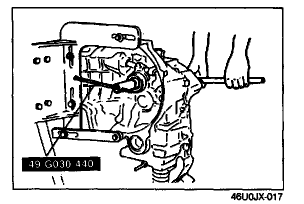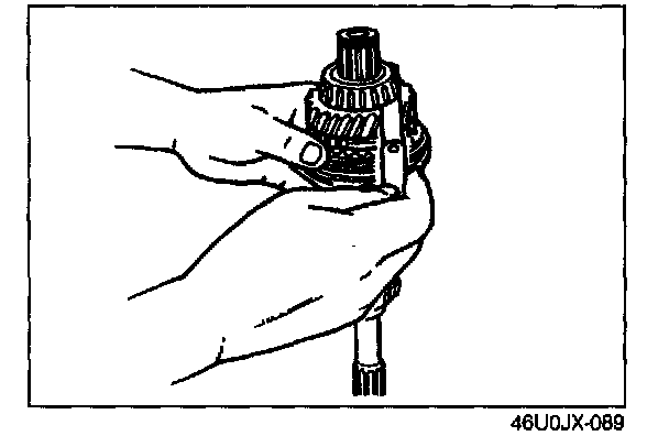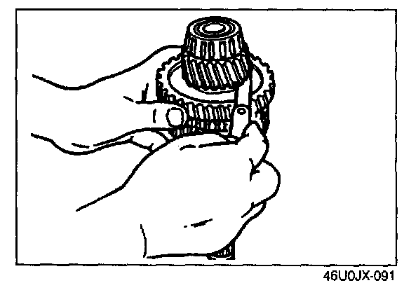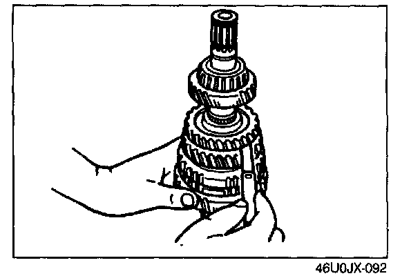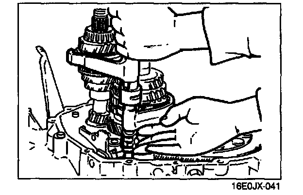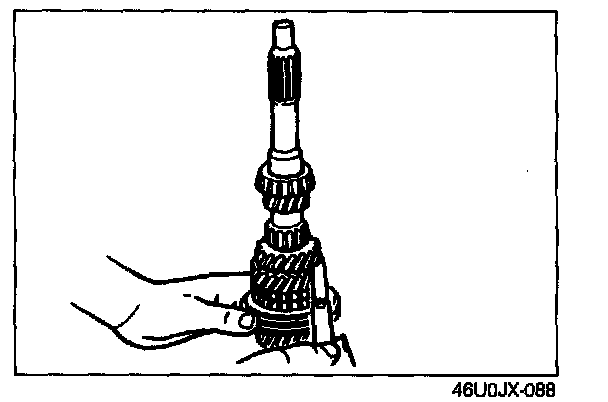 2. If the clearance exceeds the maximum, check the contact surfaces of the 5th gear and the clutch hub. Replace worn or damaged parts.