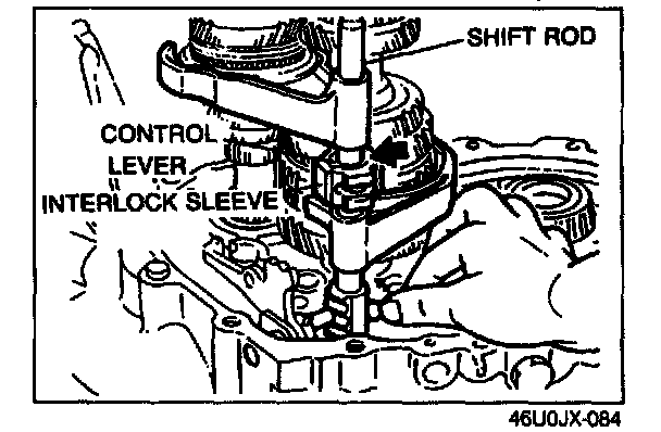 4. Separate the shift rod and shift fork assembly from each of the clutch hub sleeves.