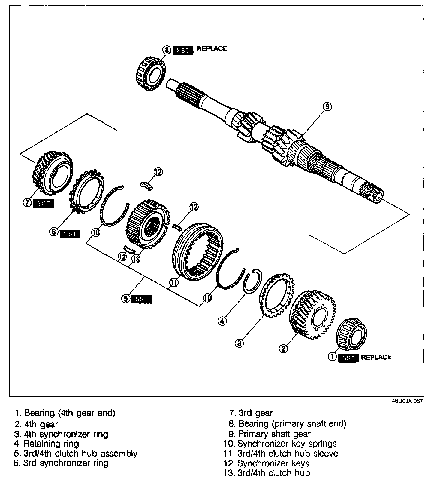 1st/2nd clutch hub assembly, 1st synchronizer ring, and 1st gear