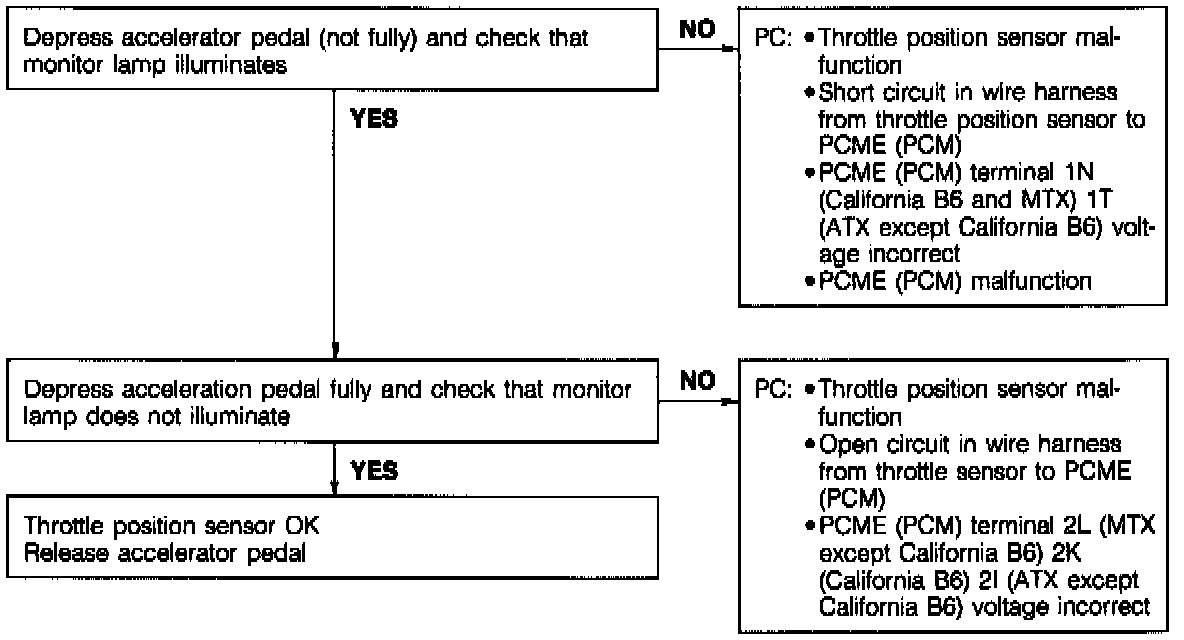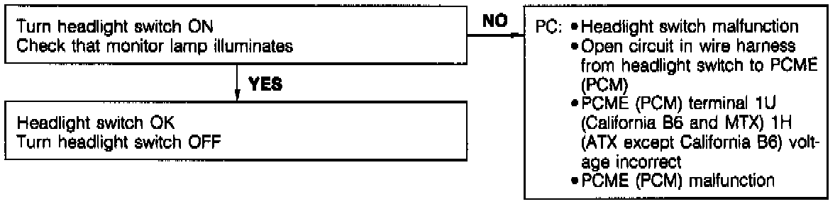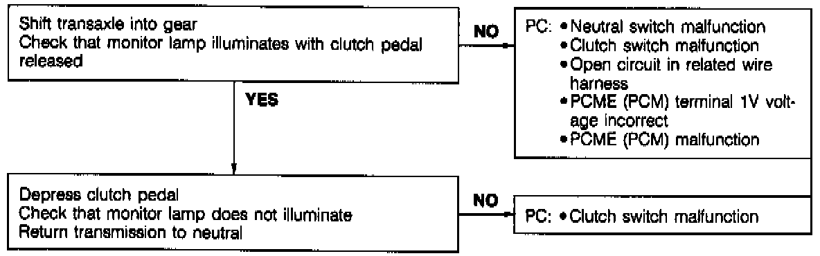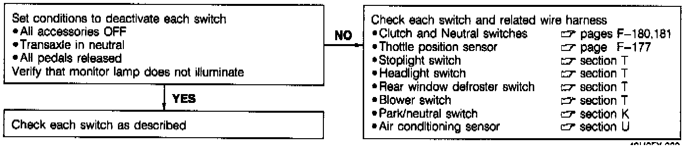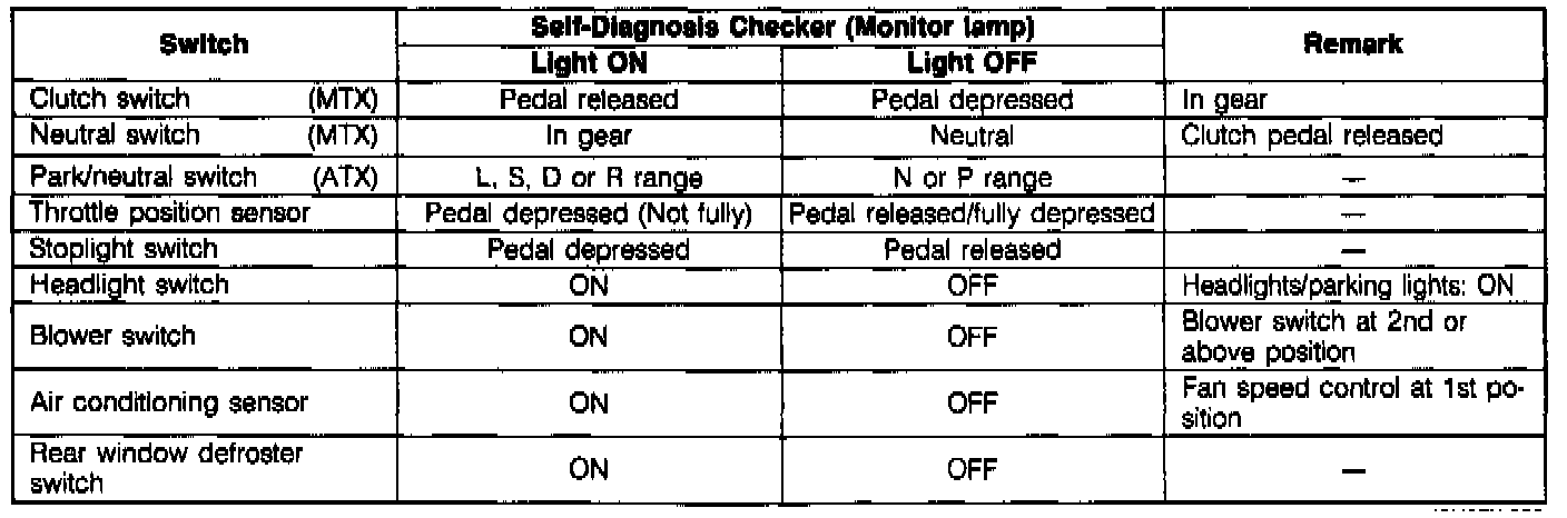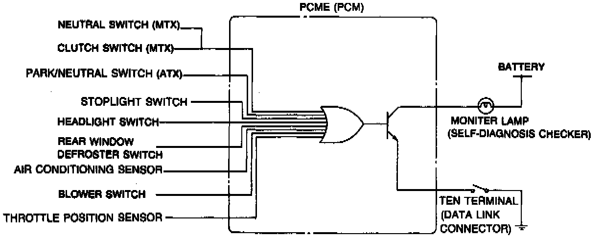 The TEN terminal of the data link connector must be grounded and the ignition switch turned ON (engine not running). If any switch remains activated, the monitor lamp will be illuminated.