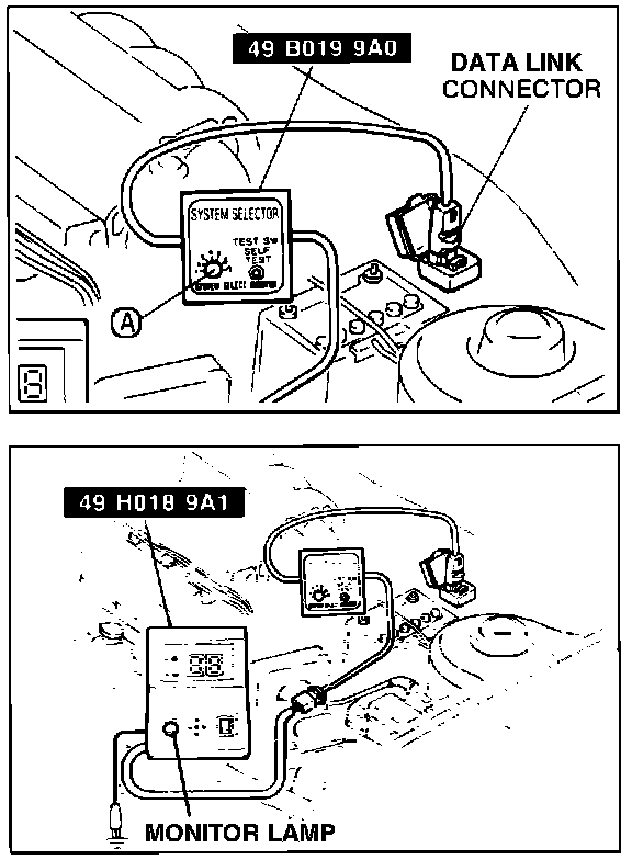 1. Connect System Selector (SST #49 B019 9A0) to data link connector.