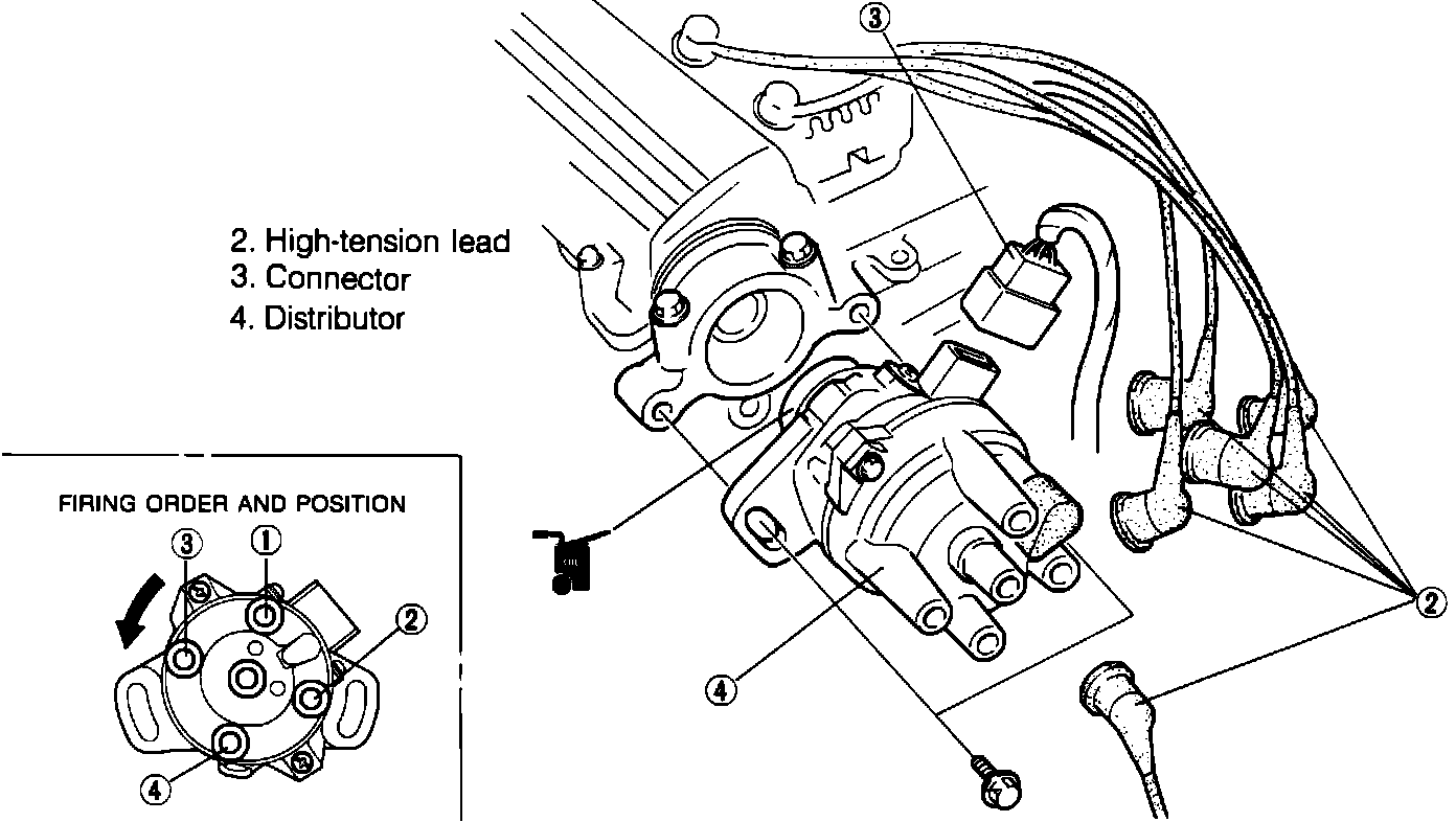 4. Remove mounting bolt and lift off distributor. Do not turn engine while distributor is removed.