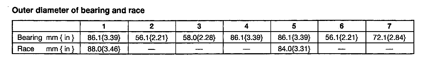 ^ The bearing and race at locations 2, 3, 4, 6, and 7 are one-piece units.