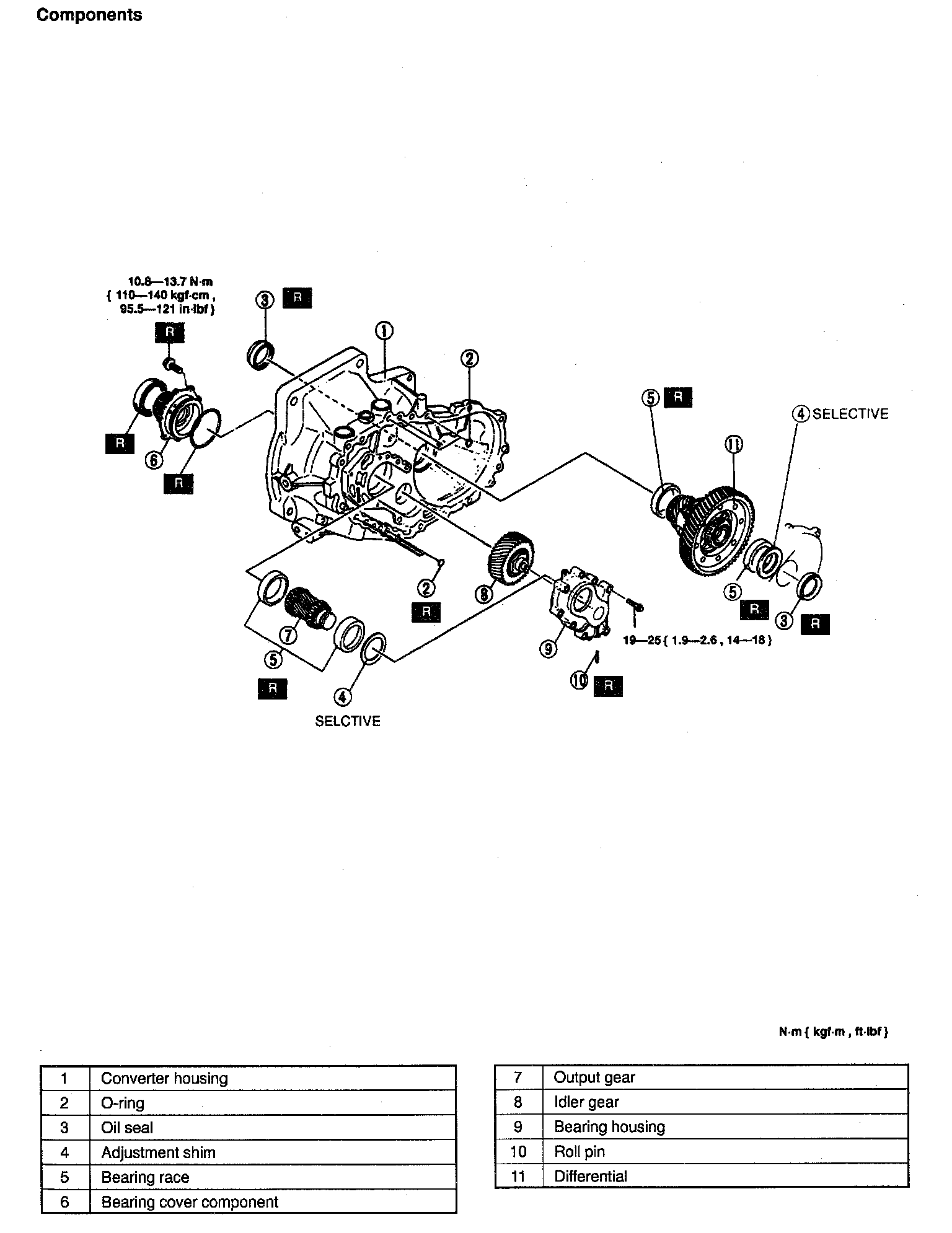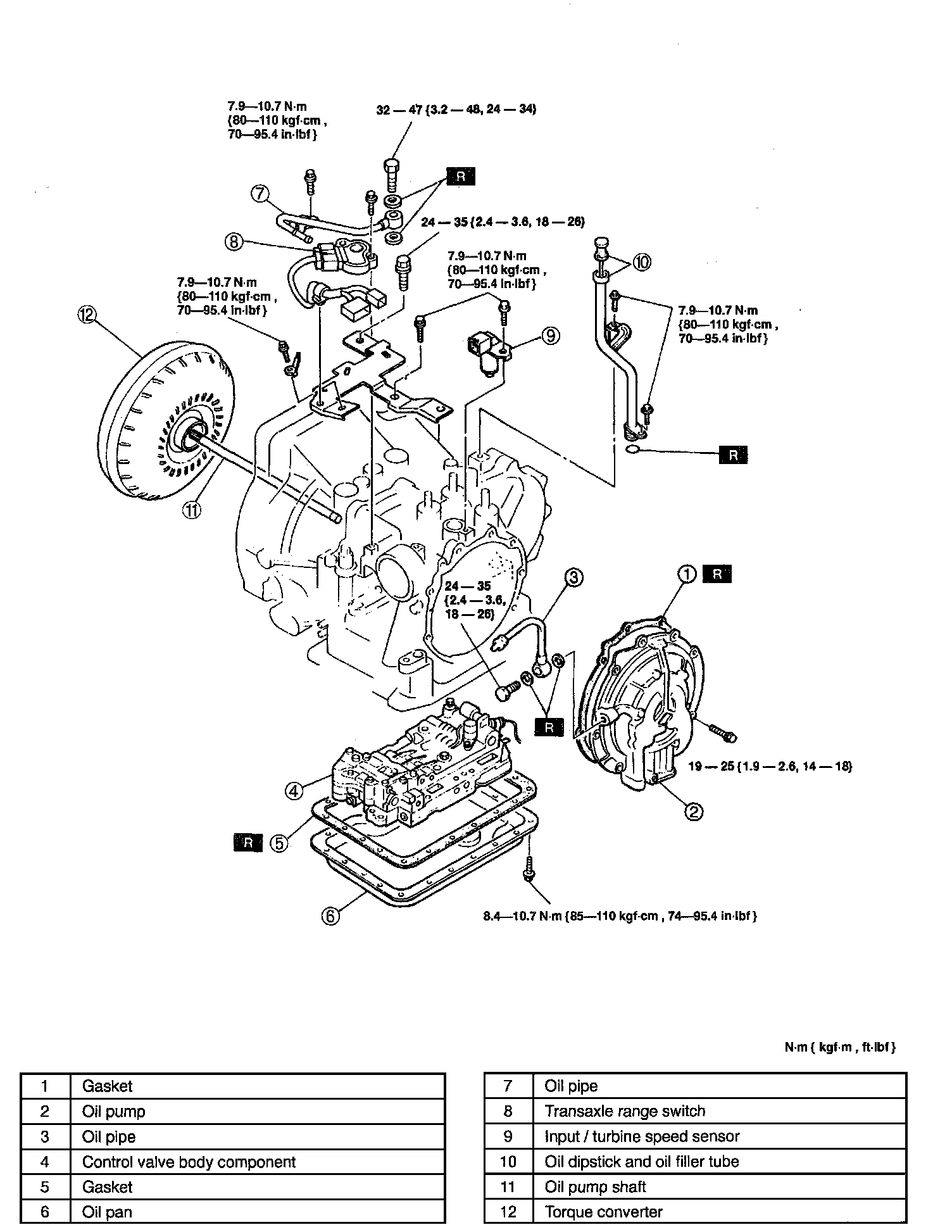 19 - 25 Nm (1.9 - 2.6 kgf-m, 14 - 18 ft-lbf)