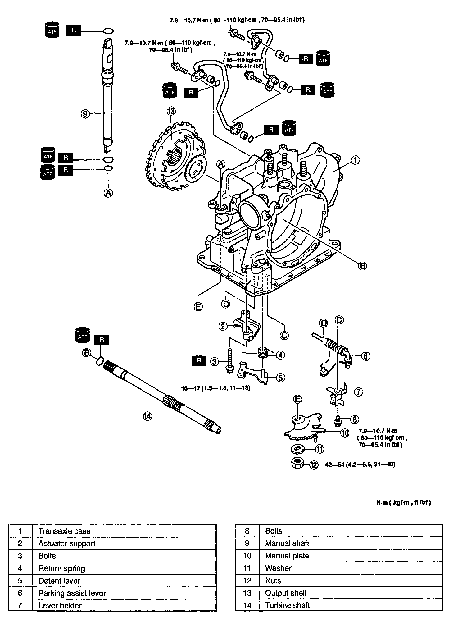 3. Before assembly, apply ATF to all seal rings, rotating parts, O-rings, and sliding parts.