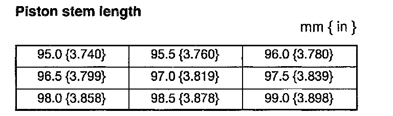 7) If not within the specification, adjust it by selecting the proper piston stem from below.