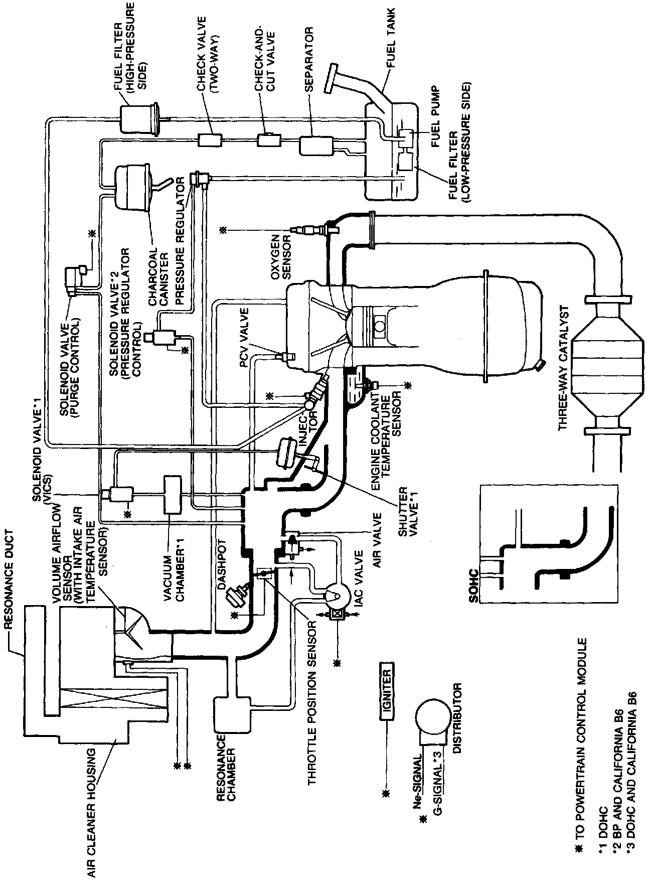 The PCME recognizes when the engine is decelerating by monitoring the engine speed and an idle switch in the throttle position sensor that tells the PCME when the throttle is closed. When the throttle is closed and the engine rpm is above a certain speed the PCME will leave the injectors turned "OFF" and no fuel is injected. This reduces emissions, prolongs catalytic converter life, and improves fuel economy.