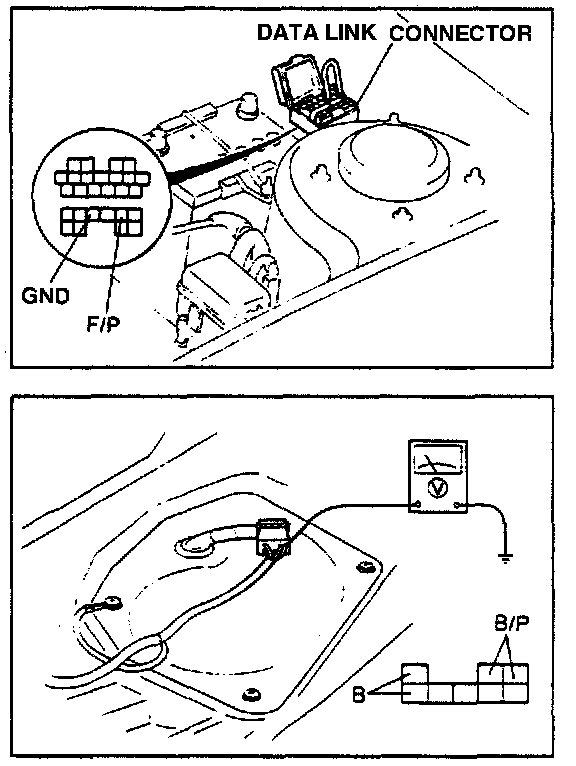 1. Connect data link connector terminals F/P and GND with a jumper wire.