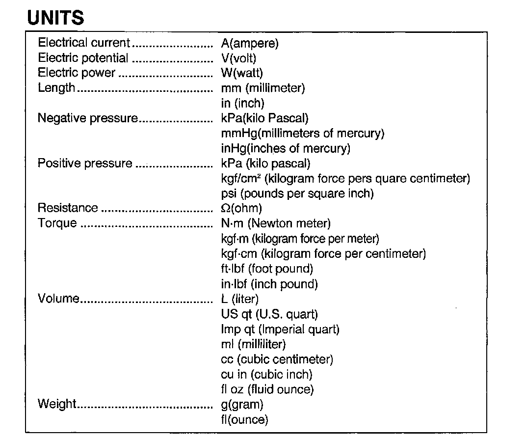 All numerical values in this information are based on SI units. Numbers shown in conventional units are converted from these values.